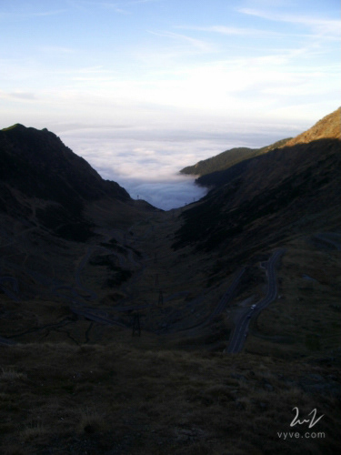 A meio da subida há uma queda de água escondida no horizonte. É impossível resistir à tentação de atingir o cume especialmente quando as nuvens estão quase ao alcance das mãos. No topo, junto ao Bâlea Lac, o lago que baptiza o local, vislumbramos as nuvens estendidas como confortáveis mantas almofadadas. Novamente esboçam uma consistente fronteira entre dois mundos onde o melhor está mais alto, mais próximo do divino, mais frio com a pouca neve que se vê.